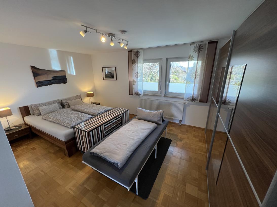 - • geräumiges Schlafzimmer: 180x200 cm Doppelbett mit Bettwäsche (vollwertiges Zustellbett 90x200 cm möglich)